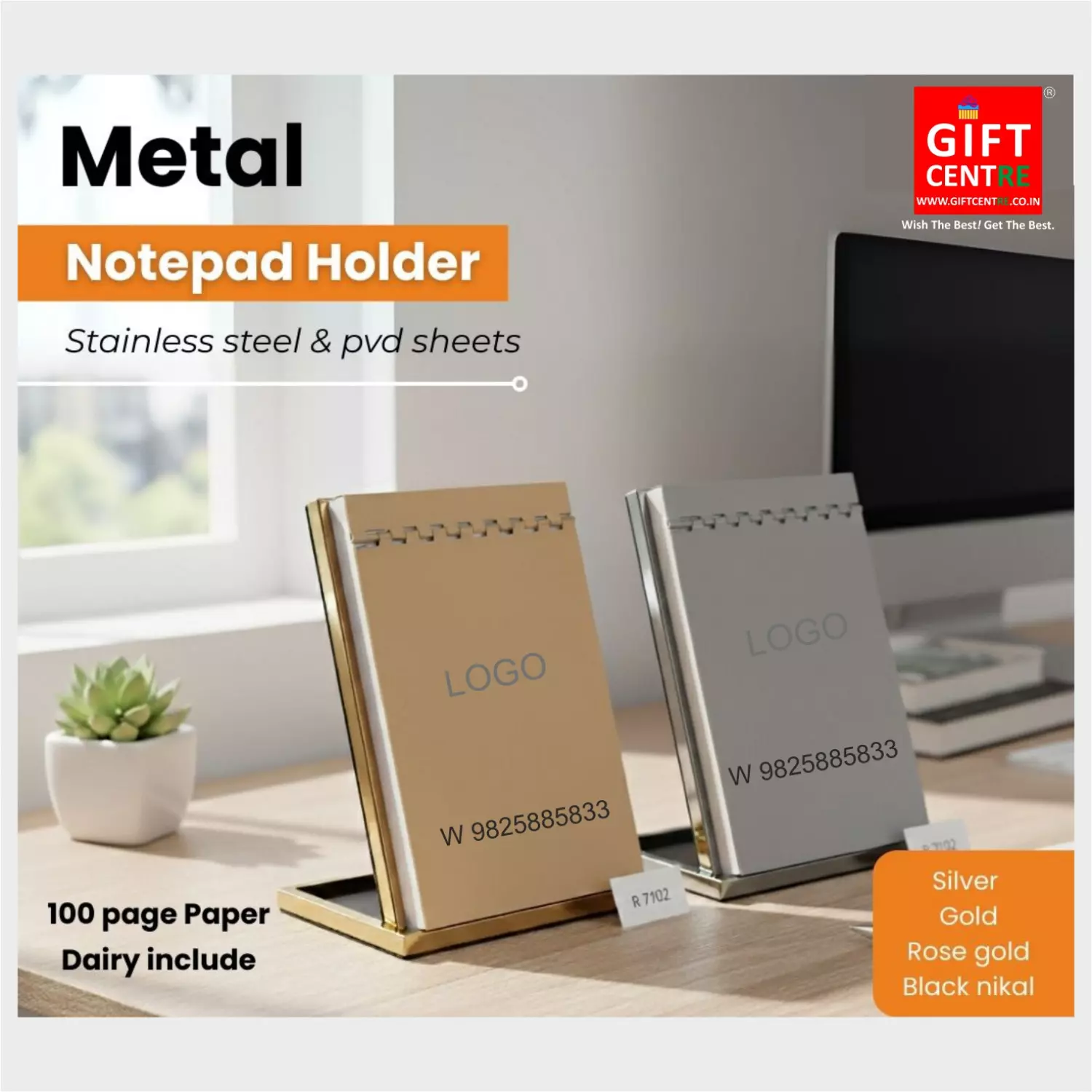 Premium metal notepad holder with your customize logo engraving. premium desktop utitlity gift, business promotional gift, event gift, expo gift, exhibition gift, conferece gift, seminar gift by giftcentre ahmedabad.
